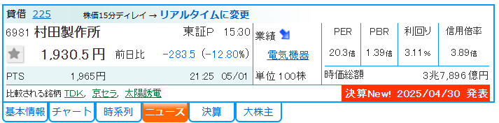 今日のピックアップ銘柄は<6981>村田製作所 です。