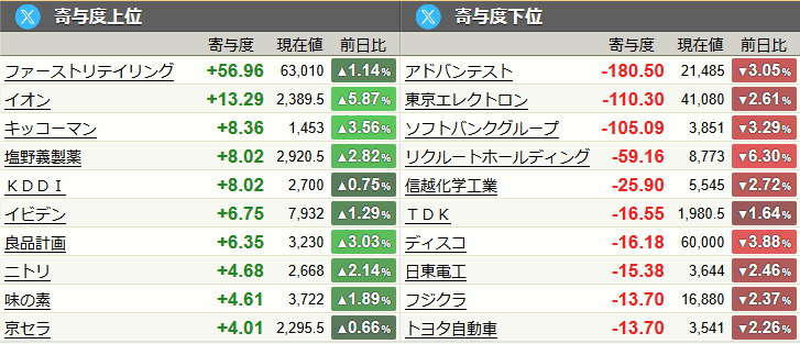 - ファーストリテイリング (9983):+56.96円(+1.14%)