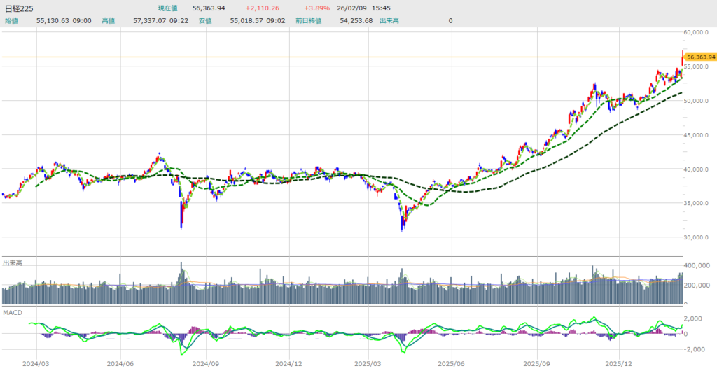 【2026/02/09】日経平均2110円高の歴史的爆騰!高市政権の圧勝が導く「5万6000円」の異次元