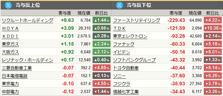 寄与度に与えた銘柄についてのまとめ