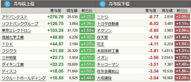 指数を押し上げた寄与度上位銘柄