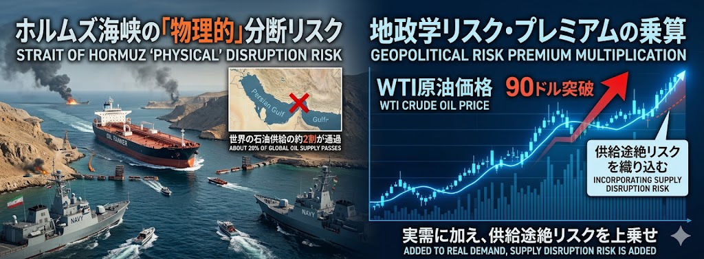 - プレミアムの乗算:WTI原油価格が1バレル90ドルを突破しているのは、実需に加え、こうした供給途絶リスクを織り込んだ「地政学リスク・プレミアム」が上乗せされているためだ。