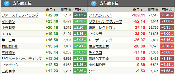 本日の寄与度上位と下位の銘柄から、市場の裏側を読み解いていきましょう。