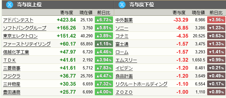指数を押し上げた寄与度上位銘柄