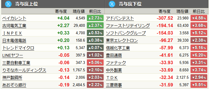 寄与度に与えた銘柄についてのまとめ